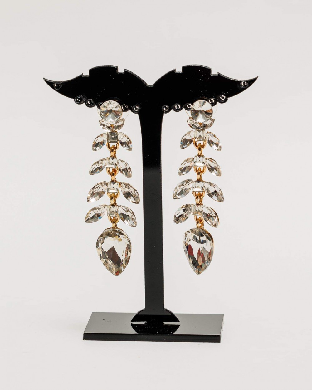 Σκουλαρίκια Μακριά Leaves White Crystals