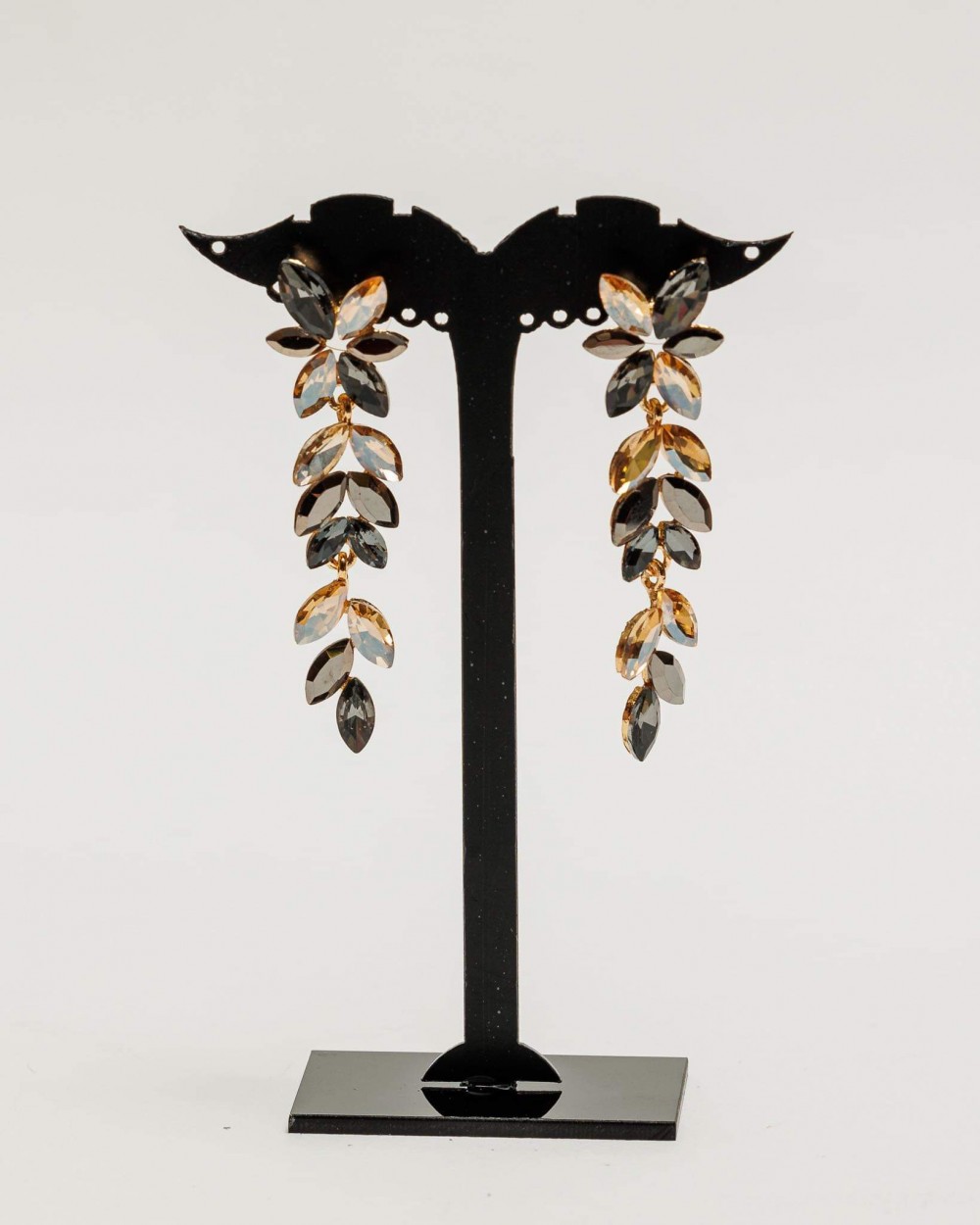 Σκουλαρίκια Μακριά Leaves Gold Grey Crystals