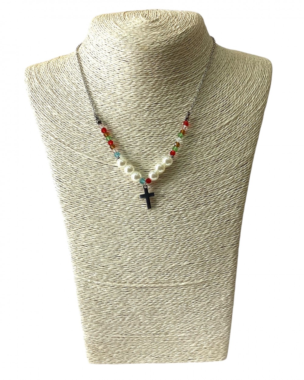 Κολιέ Ατσάλι Κοντό Silver Chain Pearls