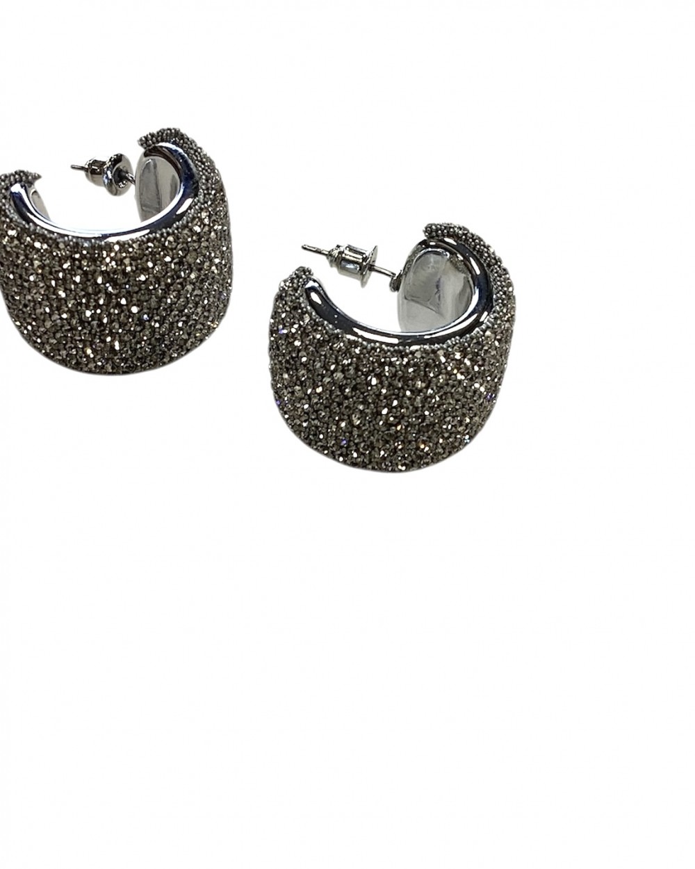 Σκουλαρίκια Κρίκοι Compact Silver Stras