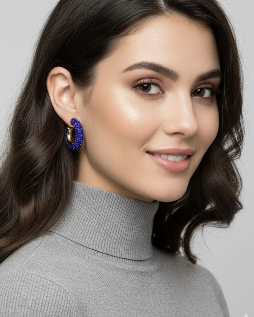 Σκουλαρίκια Κρίκοι Blue Stones Sparkles