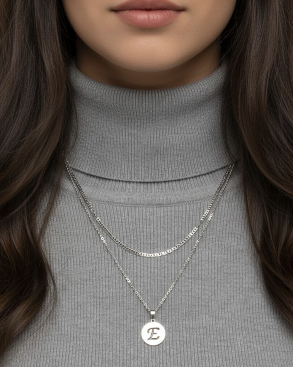 Κολιέ Ατσάλι Κοντό Διπλό Monogram E