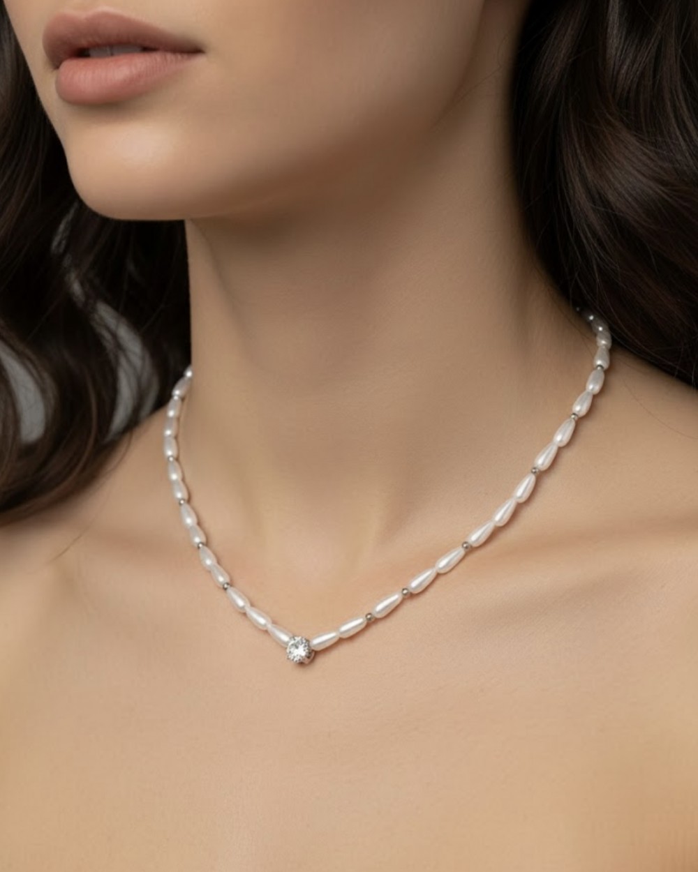 Κολιέ Ατσάλι Κοντό Pearls