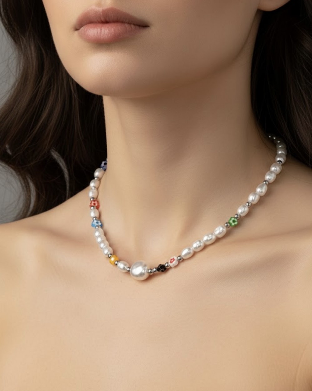 Κολιέ Ατσάλι Κοντό Pearls Motifs