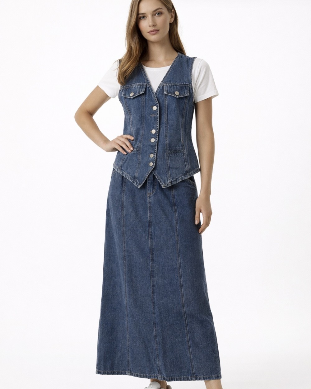 Σετ Jean Φούστα με Γιλέκο