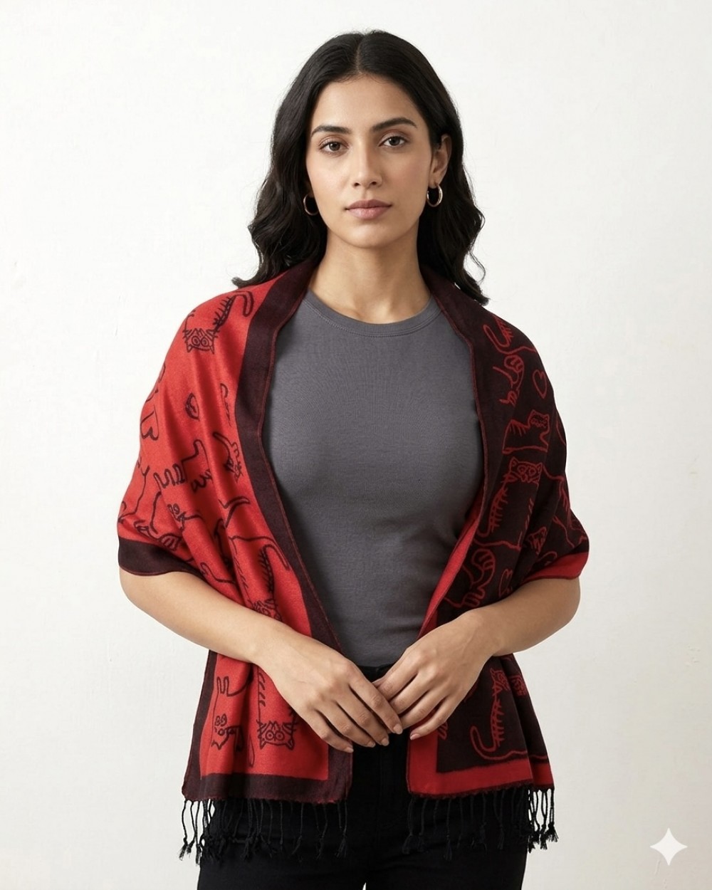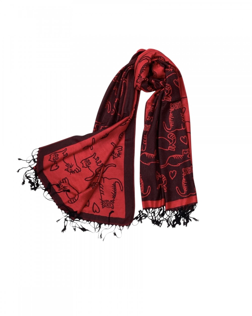 Εσάρπα Διπλής Όψης Cats Red Burgundy